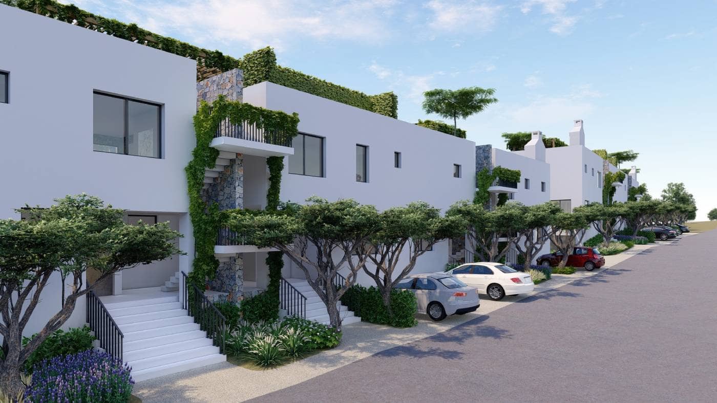 - Apartmanlar (1+1, 2+1, 3+1) – Ground floor, first floor ve penthouse seçenekleri. 70–150 m² aralığında, balkon/teraslı, deniz manzaralı.